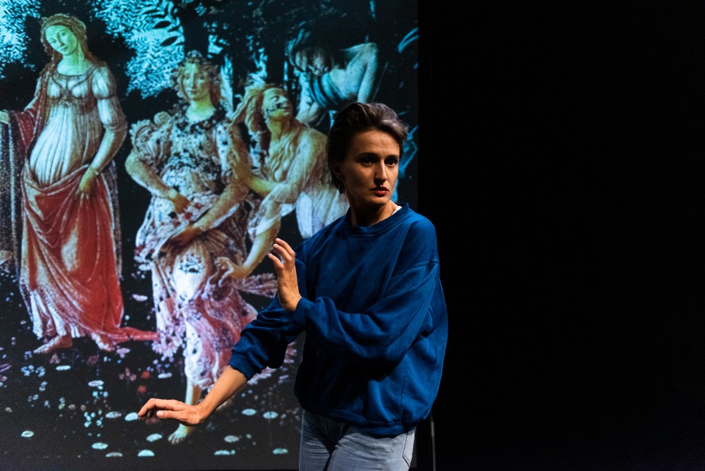 Hortense Belhôte est comédienne, autrice et enseignante en histoire de l’art. Conjuguant ses plaisirs et ses talents, elle a créé une série de conférences performées, libérant joyeusement la transmission des savoirs, sous un angle volontiers queer et féministe.