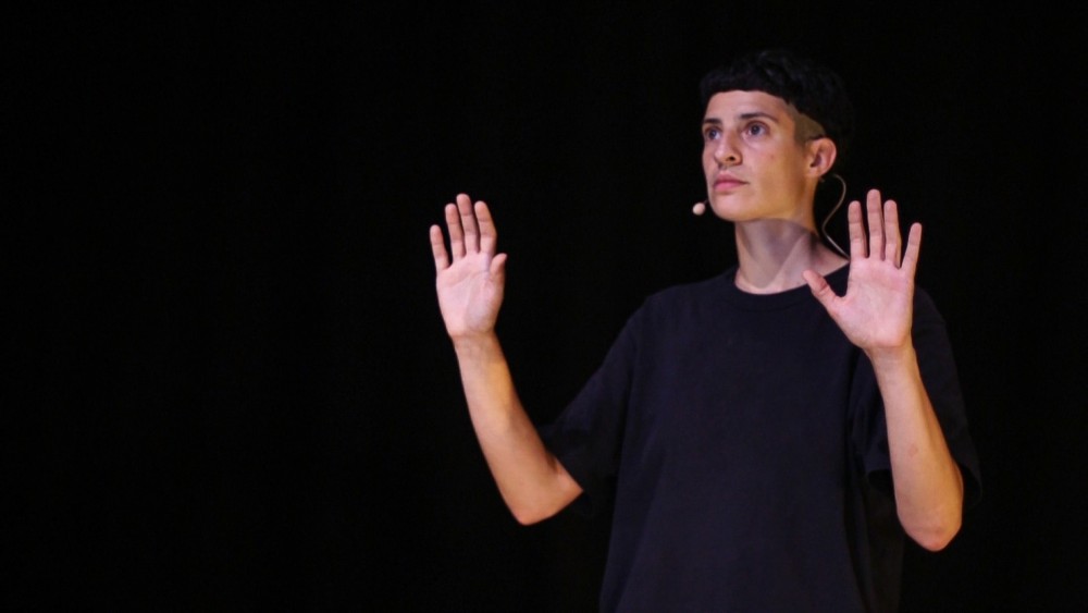Représentation du spectacle Violences audiodécrite en direct par Lucie Béguin.